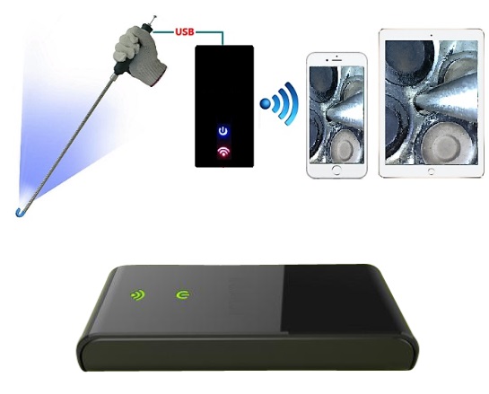 To view your inspection live, you can easily connect the borescope to your Windows or Android devices with a simple OTG USB cable. Note that if you want to connect to an Apple device or have a wireless connection to your Windows/Android device, you will need to also get the WiFi Airbox along with your borescope purchase.